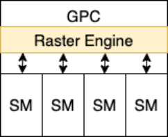 主机接口(Host Interface)是GPU与CPU沟通的桥梁,用于进行数据和指令的交换。大规模线程引擎(Giga Thread Engin)扮演大管家的角色,管理GPU中执行的所有工作,包括线程块与线程束调用,并行度调整等。核心工作部分则是图形处理集群(Graphics Processing Cluster),即GPC,负载执行图形渲染任务,一个GPU的内部可以有多个GPC,单个GPC内部抽象结构如下图所示。