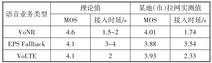 语音业务是无线通信网络服务的基本业务,3GPP在R15版本定义5G时,明确了5G仍以IMS为基础提供语音业务的设计原则,并要求5G部署要尽量减少对现有IMS的影响[6]。基于上述原则,根据5G NSA和SA两大方式,5G语音有3种部署方案:VoLTE、EPS Fallback和VoNR,3种部署方案的MOS与时延指标对比如表1所示。从表1可以看出,VoNR的优势在于通话质量更好,续接时延更低。