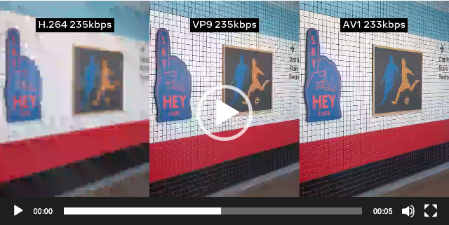 AV1 的 HLS 回放无需任何新的信号要求,只需常规的 CODEC 和 VIDEO-RANGE 属性即可。SCORE 属性还可用于强制播放客户端优先选择 AV1 而不是其他编码,但对于较旧的设备和 AirPlay 支持,仍应包含使用 AVC 和/或 HEVC 编码的渲染。WebKit 博客提供了有关 Safari 17.0 的更多信息,确认在支持硬件解码的设备上添加了对 AV1 视频编解码器的支持。他们还分享了这个 html 代码片段,用于呈现使用 AV1、HEVC 和 VP9 编码的单文件逐行视频,允许浏览器选择最佳选项进行播放。值得注意的是,在非常短的片段之外,为了提供最佳的体验质量和带宽效率,使用 HLS 的自适应流媒体比逐行流媒体更受欢迎。