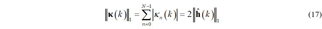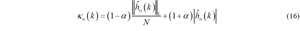 可以发现当α=-1时,IPNLMS和NLMS是等价的,当α接近于1时,IPNLMS接近于PNLMS。公式(16)可以看成由两部分组成,第一部分是估计滤波器权重系数绝对值的平均值,第二部分是滤波器权重系数绝对值,当回声路径稀疏时,由于这个估计值和真实值之间有差距导致“比例”计算错误从而影响滤波器收敛。然而第一项引入平均值可以消除第二项引入的一些误差,因此其更准确一些。在实际情况中,一般取α为0或者-0.5。
