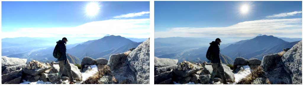下图为BT.2407协议中一种色域映射后的效果图,左图为基于Clip的色域映射,右图为基于压缩方法的色域映射,可以看到优秀的的色域映射算法可以呈现更丰富的细节,它对最后的效果呈现影响非常大。