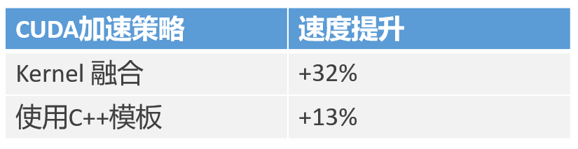 通过使用C++模板和使用Kernel融合策略,CUDA端的性能提升达到如下