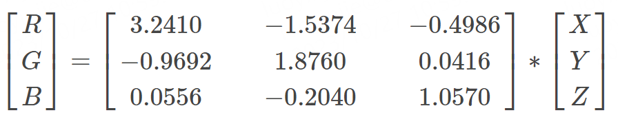要将XYZ信号转换为BT.709 RGB信号,使用BT.709的XYZ到RGB的转换矩阵就可以了,如下: