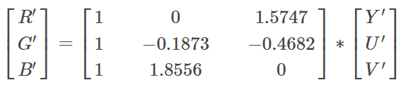 举例来说,常见的BT.709标准就属于一种色彩矩阵,它指导了如何将YUV信号转换为RGB,其转换方式如下: