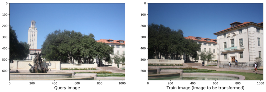 首先,我们需要加载2个图像,一个查询图像和一个训练图像。最初,我们首先从两者中提取关键点和描述符。通过使用OpenCV detectAndCompute()函数,我们可以一步完成它。请注意,为了使用detectAndCompute(),我们需要一个关键点检测器和描述符对象的实例。它可以是ORB,SIFT或SURF等。此外,在将图像输入给detectAndCompute()之前,我们将其转换为灰度。