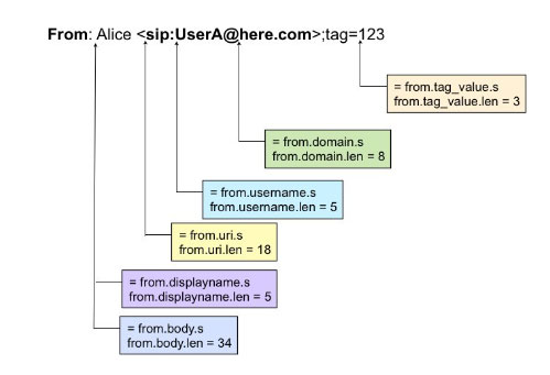 就像前面介绍的,根据下图所示,Kamailio保留了缓冲区支持接收到的SIP消息的,并在返回SIP特定属性的值时指向其中的内容。