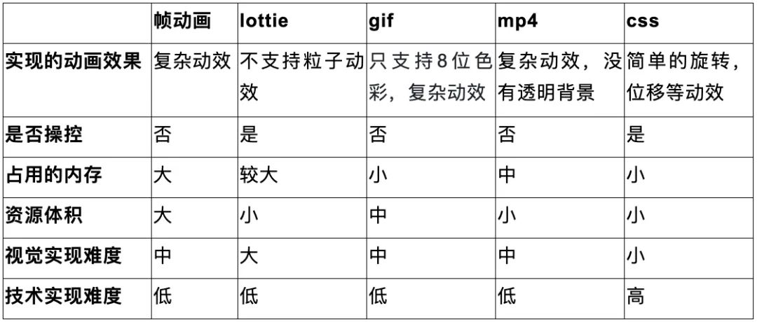 为了在项目中实现动画效果,目前业界现有的方案有:帧动画、lottie、gif、video等。这些方案中帧动画占用的体积较大,gif只支持8位色彩,画质比较粗糙,mp4是不支持透明背景,canvas/css对于复杂动效实现比较复杂,而动画引擎对我们项目来说开发成本以及设计成本都比较大。
