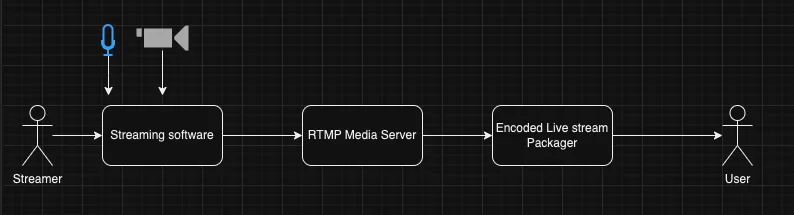 如上图,Streamer 将使用 OBS 等流媒体应用程序来获取麦克风和摄像机的输入作为 RTMP 输入。您可以使用 FFMPEG 构建自己的流媒体,但由于 OBS 是开源且免费的,因此目前我对此不太关心。
