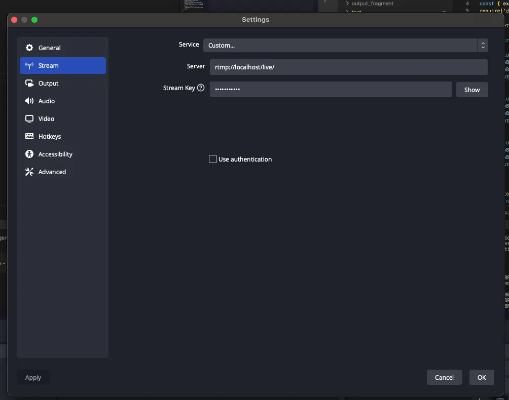 进入 OBS,在 “设置 “中选择 “流”,然后像这样更改设置。在本例中,流关键字为 STREAM_NAME