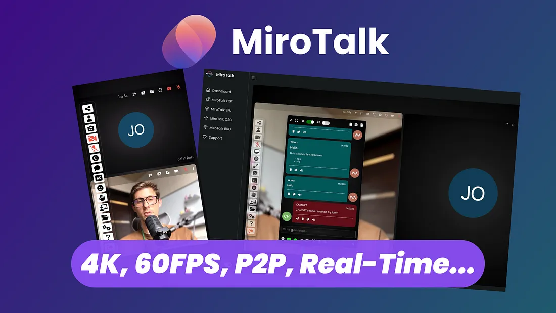 MiroTalk是一个开源解决方案,凭借基于浏览器的实时视频通话和大量创新功能,MiroTalk 成为满足各种通信需求的多功能安全平台。
