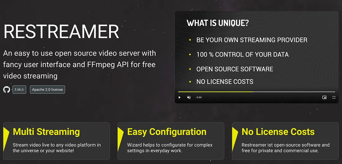 Restreamer 是一款功能强大、用户友好的视频流解决方案。它的开源特性,加上花哨的用户界面和与 FFmpeg API 的集成,使它成为各种流媒体应用的绝佳选择。无论你是内容创作者、教育工作者还是商业专家,Restreamer 都能为你提供高质量视频流所需的工具和灵活性。