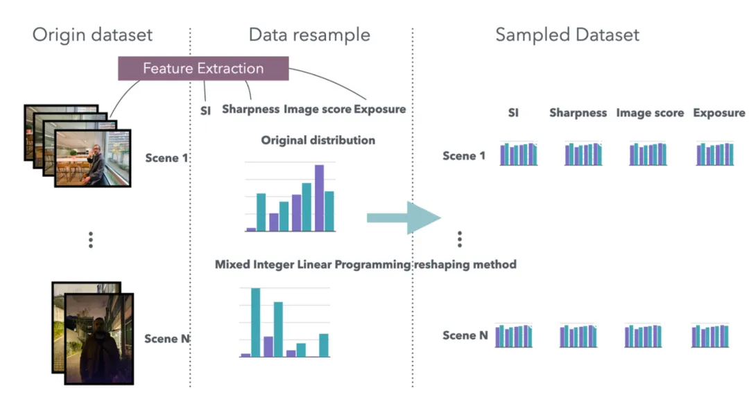 针对DXO的的人像数据场景,抖音团队设计了一种基于数据重采样和vision transformer的图像质量评估模型,名为「SampleIQA」。