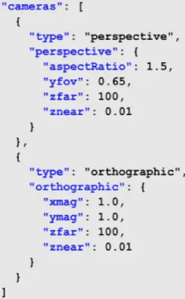 熟悉OpenGL的同学一眼就能看出里面定义了一个透视投影相机和正交投影相机,以及视角、近/远平面等参数,这个比较简单,没有太多好说的。