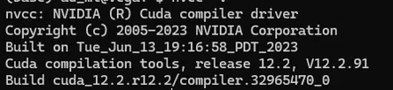 在上述命令的输出中检查 CUDA 版本。如下所示,我的 CUDA 版本为 12.2。