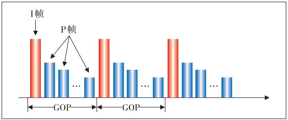基于图像组(Group-Of-Picture,GOP)双流业务模型如图2所示。若一个GOP内包含K个帧,则该GOP内包含的I帧数量是1,P帧的数量是K-1。在传输过程中,I帧通常作为一个GOP的开头,用于进行视频解码的起点,其解码不需要参照其他的任何帧,因此若其他帧发生错误,I帧的解码不会受到影响。在传输过程中,P帧通常需要依赖前面的I帧或P帧进行解码,P帧是否正确解码会影响到其后续P帧的解码正确性。