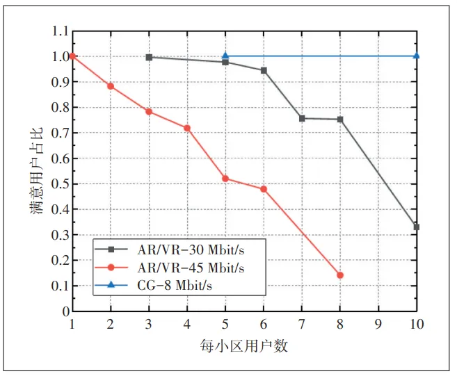 a)满意用户。高丢包率会影响数据的完整性和感知质量,为了判断用户的XR体验是否满足要求,将满足PDB和数据包传输成功率(Packet Success Rate,PSR)要求的用户定义为满意用户。即在时延要求内,若某一用户超过X%的数据包被成功接收,则认为该用户为满意用户。其中用户包成功率X的取值可以为99或95。
