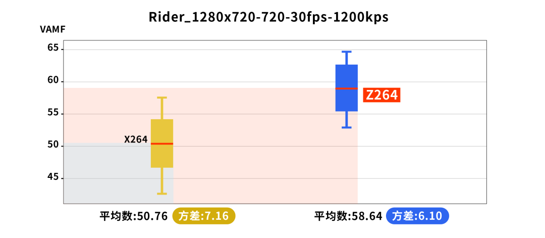 方差是用来评价画面质量的核心标准之一,值越小越好。通过实测,Z264即构自研编码器的方差整体值更小。