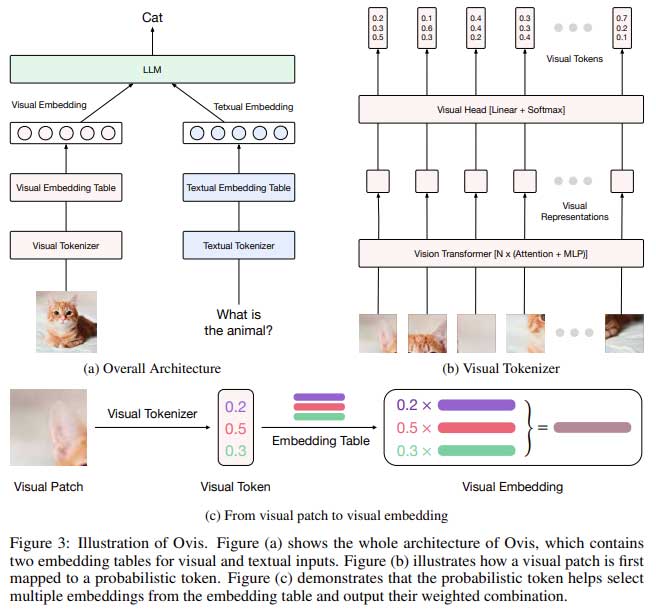 - 结构对齐: Ovis 引入了一种新颖的视觉嵌入表,可以在结构上对齐视觉和文本嵌入,从而增强模型处理多模态数据的能力。