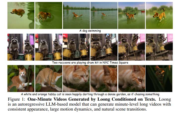 Loong 模型可以生成外观一致、运动动态大、场景过渡自然的长视频。Loong 采用统一顺序的文本标记和视频标记进行建模,并通过渐进式短到长训练方案和损失重加权克服了长视频训练的挑战。该模型可用于协助视觉艺术家、电影制片人和娱乐目的。但与此同时,它可能被错误地用于创建虚假内容和传递误导性信息。