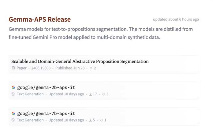 Gemma-APS 模型经过精心设计,可将连续文本转换为较小的命题单元,使其更适用于后续的 NLP 任务,例如情绪分析、聊天机器人应用程序或检索增强生成 (RAG)。借助此版本,Google AI 希望使文本分割更容易实现,并优化模型以在各种计算资源上运行。