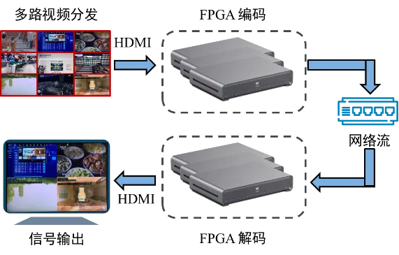 北京大学视频与视觉技术国家工程研究中心与铁力山紧密合作,共同研发了基于PLLC的高速实时FPGA编解码系统,如图3所示。该系统能够处理四路实时采集的4K视频,通过PLLC编码器进行实时压缩后,经由局域网传输至接收端,随后通过FPGA实时解码器解码并输出至显示屏。该系统可以实现3倍无损压缩效果,充分展示了PLLC标准在高速高分辨率视频高效视频压缩传输应用中的强大性能。