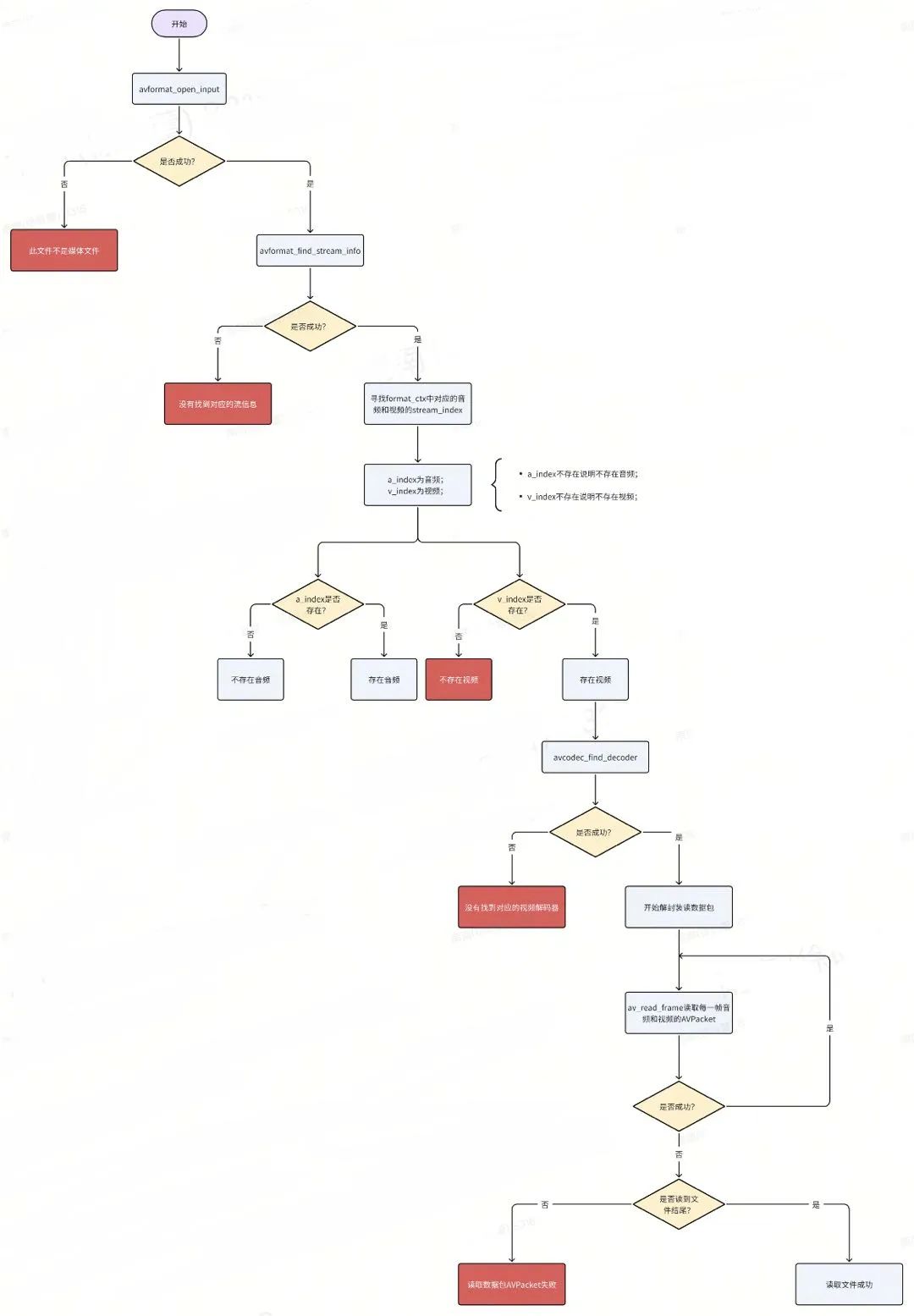 目前这个方案的核心检测能力已应用在得物App发布工具场景使用,其能通过ffmpeg解析视频的元数据,获取其基本信息,如视频尺寸,码率等,能查找目标视频下的视频流,对音频和视频的AVPacket进行验证,检测文件是否损坏,时间轴是否存在异常等等。正常的流程如下: