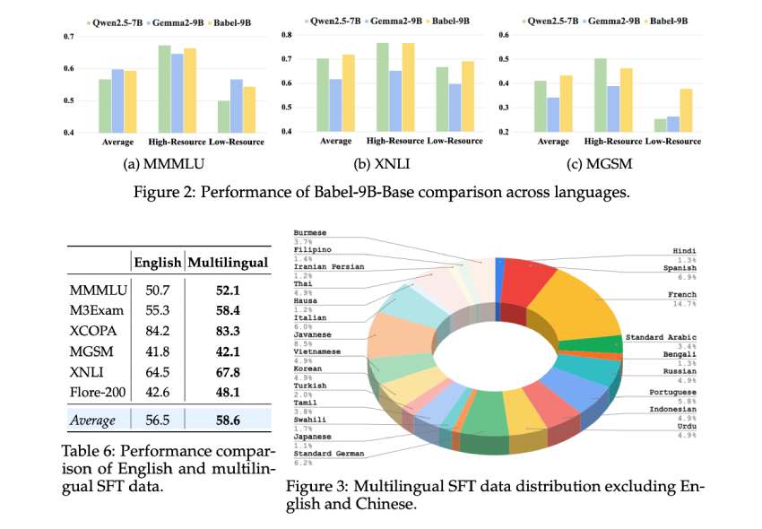 - Babel 显著提高了训练数据有限的语言的准确性,与现有的多语言 LLM 相比,其在代表性不足的语言中的表现提高了 10%。