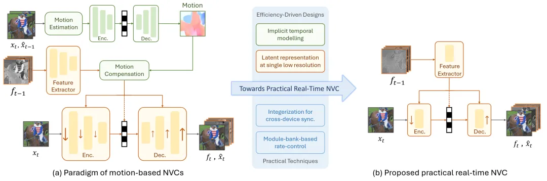神经视频编解码器(NVCs)在实现更高压缩比方面展现出了巨大潜力。最近的NVCs已经超越了传统的编解码器,如H.265/HM、H.266/VTM和ECM。在此背景下,压缩比已不再是NVCs的主要瓶颈。相反,关键挑战在于如何使NVCs更加实用和可部署,以有效利用这些压缩比优势。