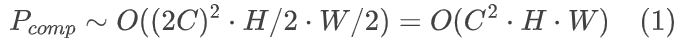 源于压缩自编码器的概念,大多数NVCs逐步下采样潜在表示以降低维度。在每一层,它们将潜在表示下采样一半,同时将通道数翻倍。这使得各层之间的计算复杂度Pcomp相当,
