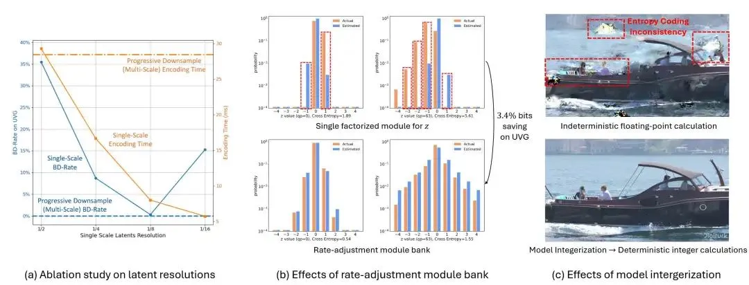 对于NVCs,浮点计算的不确定性可能导致在分发视频内容时出现不一致。为了解决这个问题,实现了16位模型整数化。这种方法启用了确定性的整数计算,确保了在不同设备上的一致输出。更具体地说,浮点特征值vf和int16值vi之间的方程如下: