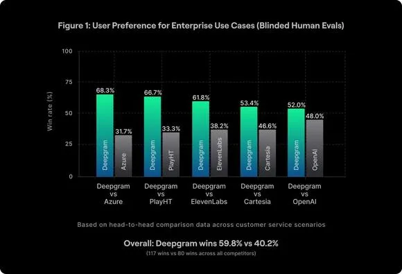 Aura-2 弥合了这一鸿沟,提供高质量、情境感知的语音,专为业务关键型环境所需的规模、精度和弹性而设计。与专注于娱乐、针对创意表达进行优化的系统不同,Aura-2 体现了企业语音 AI 的优先事项,在以下关键维度上带来优势: