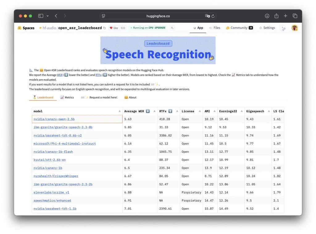 - https://huggingface.co/spaces/hf-audio/open_asr_leaderboard