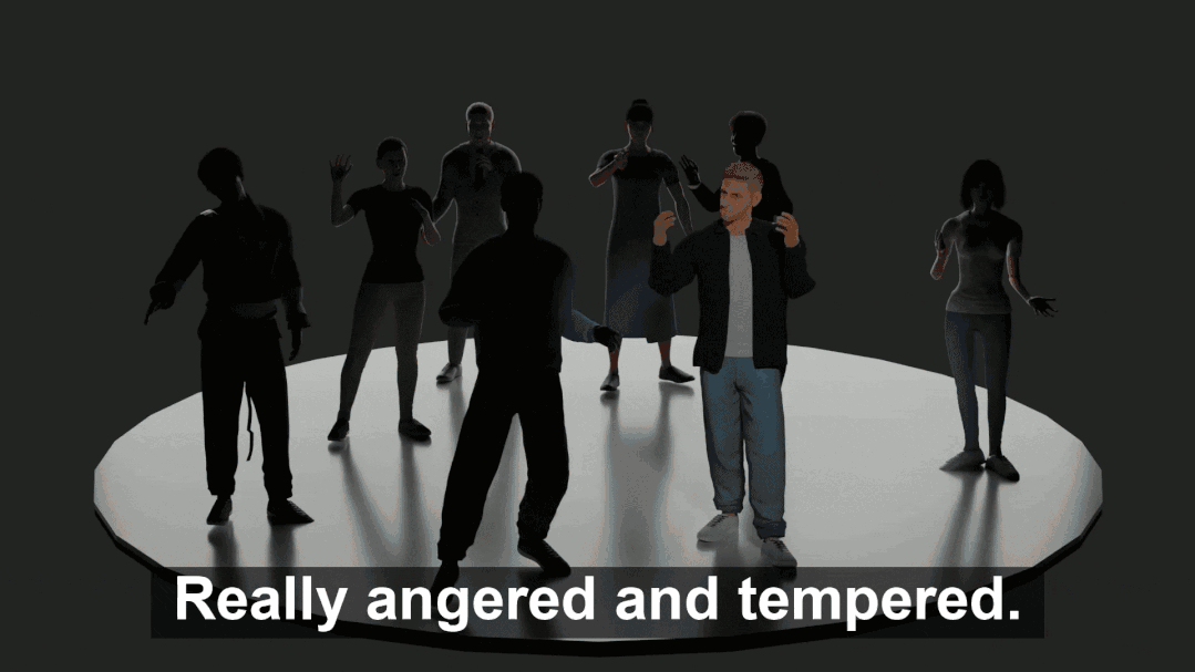 部分渲染后的数据如下(从上到下依次为,生气 – 恐惧 – 惊讶 – 伤心情感下人的动作):