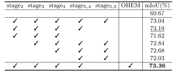 分割头的具体结构如上图所示,我们可以通过控制通道维数 来调整辅助分割头和主分割头的计算复杂度。我们分析了不同插入位置的影响,其结果如下表所示。