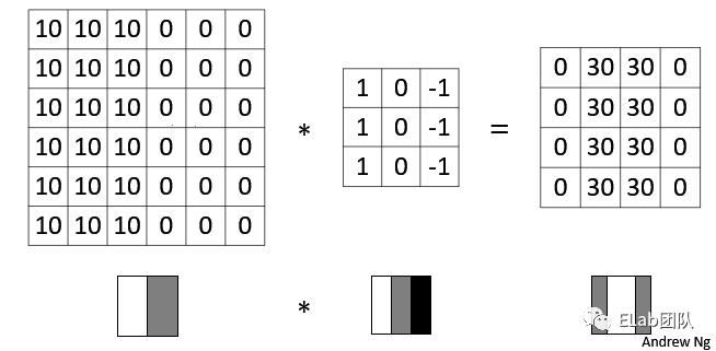 假设我们有2个检测的特征为「水平边缘」和「垂直边缘」。「垂直边缘」卷积过程如下:
