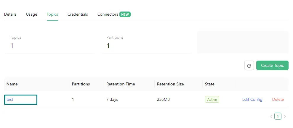 - 打开 “Kafka “选项卡并创建一个集群(稍后可以创建主题)