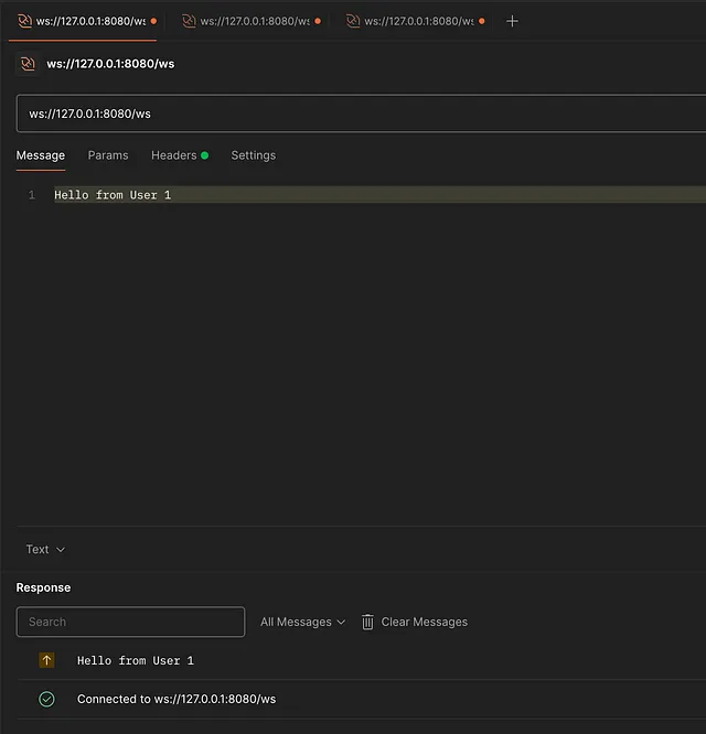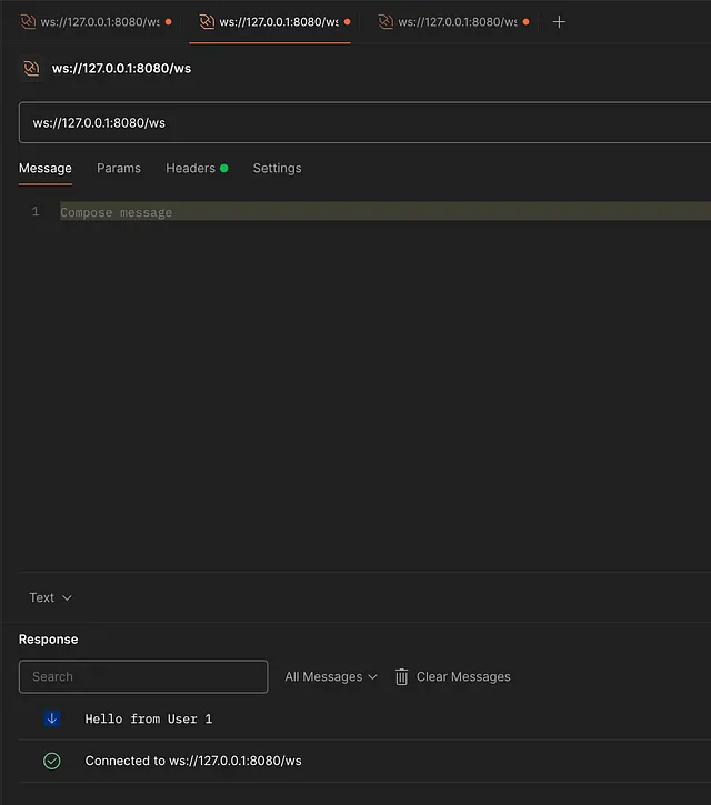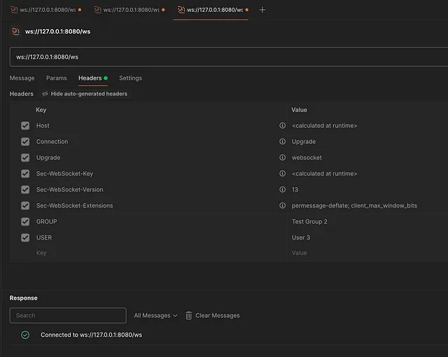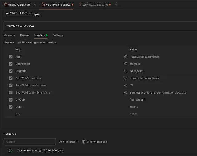 如果用户 1 发送信息,则只有该组的其他用户(即本例中的用户 2)才能收到。这可以从下面的截图中看到。