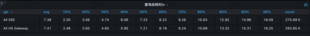 关于SSE原生流解析 与 fes流解析是不同语言实现的这一点,我们也思考了语言差异对性能的影响,所以对响应数据的解析耗时做了实验,在相同机器和网络环境下,对比了原生 SSE 和 fes 处理数据流的耗时,实验结论是两者在耗时上没有明显差异(毫秒级)。从后续在机票列表页大规模应用后的监控数据上看也印证了这一点。