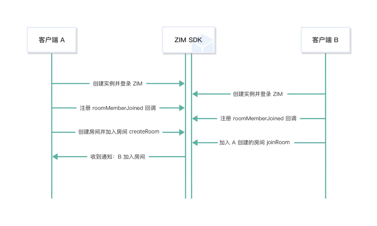 例如,当客户端 B 加入由 A 创建的房间时,A 将收到房间内成员变动的通知。