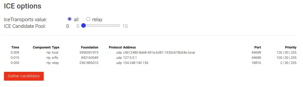 STUN 和 TURN 服务器的功能可以使用Trickle ICE进行测试。该工具通过创建具有您的 TURN 服务器信息的对等连接来试用您的 TURN 服务器功能,然后开始收集 WebRTC 会话的候选者。