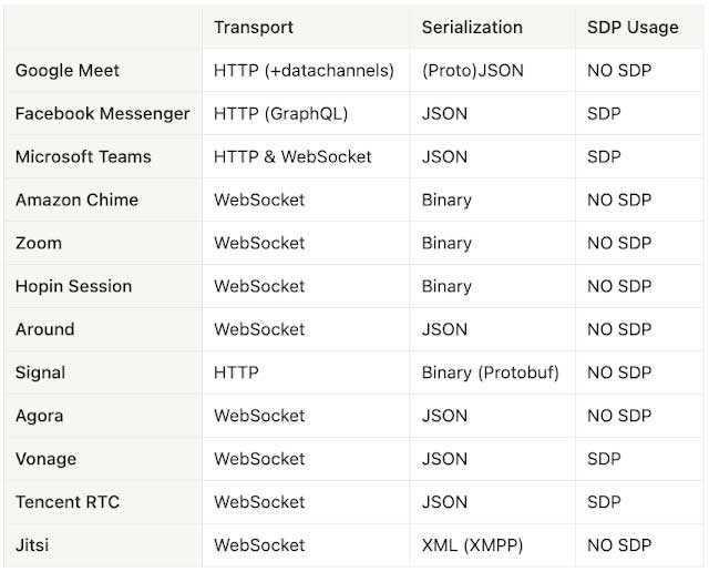 这篇文章对各种流行的WebRTC平台中的信令通道实现进行了快速回顾。它考察了信道使用的协议,消息如何被序列化,以及应用程序是否使用会话描述协议(SDP)作为网络上的不透明字符串,或者他们是否以自定义格式发送所需的参数。