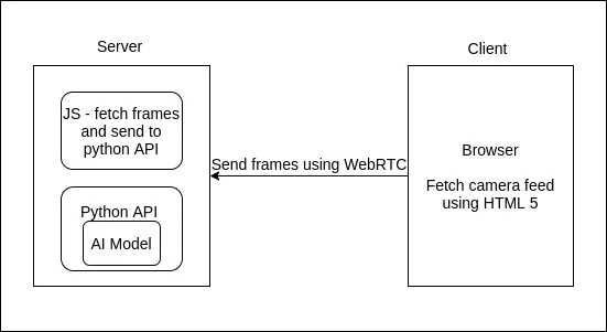 现在,让我们关注前端部分。在前端,我们必须执行以下操作:使用浏览器获取流、在画布上绘制每一帧、将其转换为 Blob(字节数组)并将其发送到 python flask API 进行预测。因此,为了捕获第一帧,我们将在 JavaScript 中编写一个 startFrameCapture 函数。在此,我们将根据视频尺寸定义画布大小。