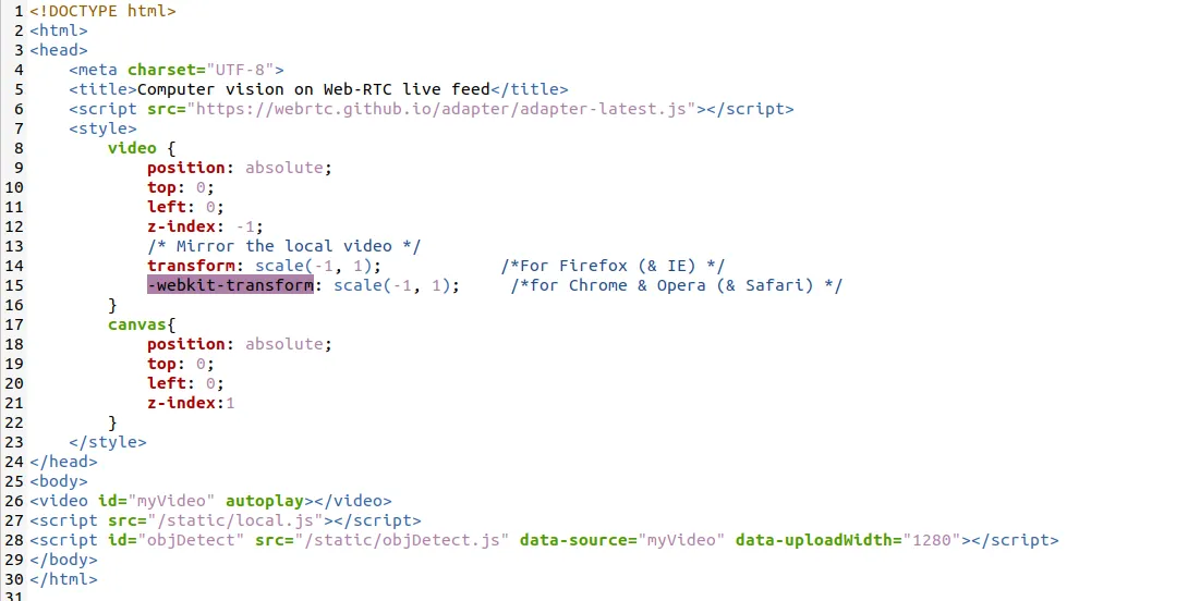 我们的索引页面仅包含一个简单的 JavaScript,用于使用 HTML 5 从浏览器本身捕获视频帧: