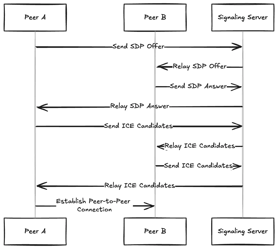 - 向信令服务器发送要约:Peer A 将此要约发送至信令服务器。
