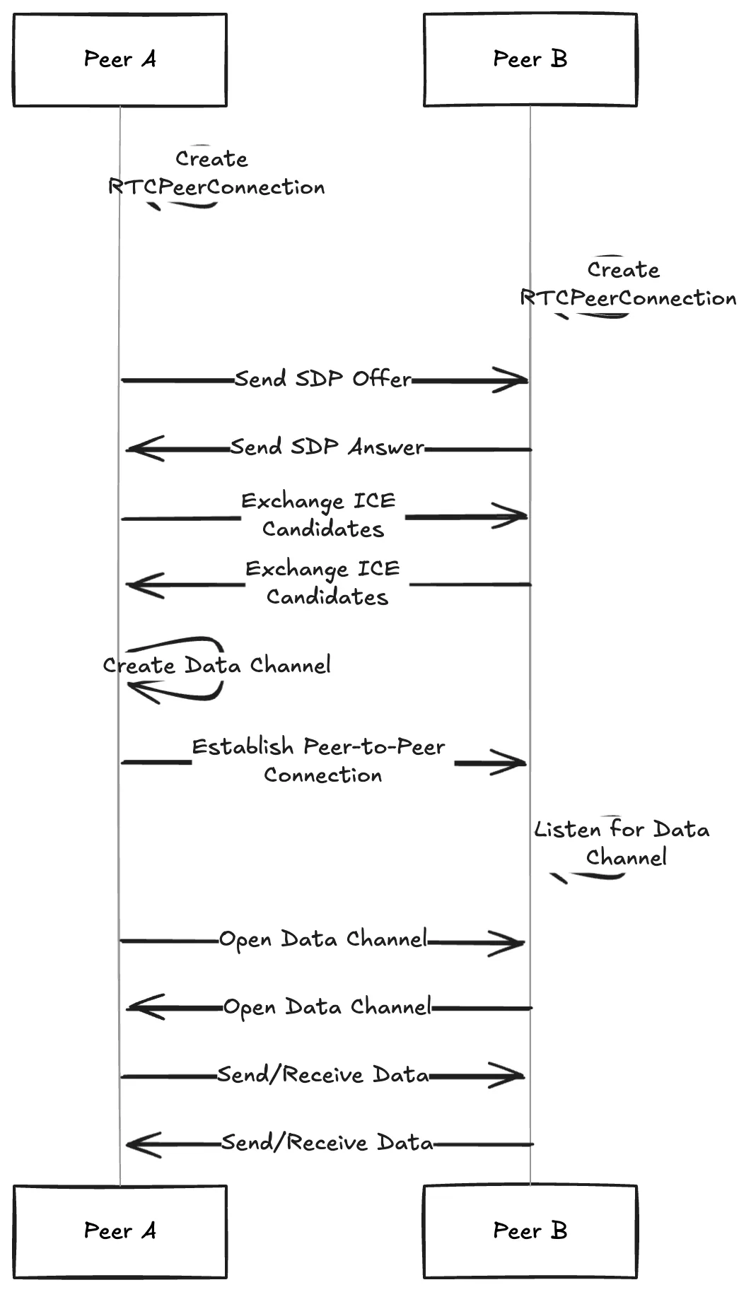 - 发送和接收数据:对等点现在可以通过数据通道发送和接收消息。