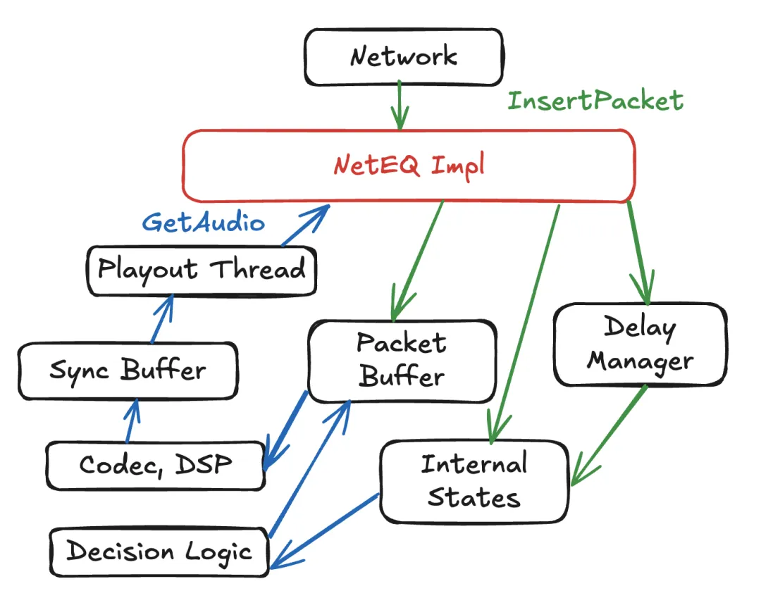 NetEQ 有两个主要 API:InsertPacket和 GetAudio: