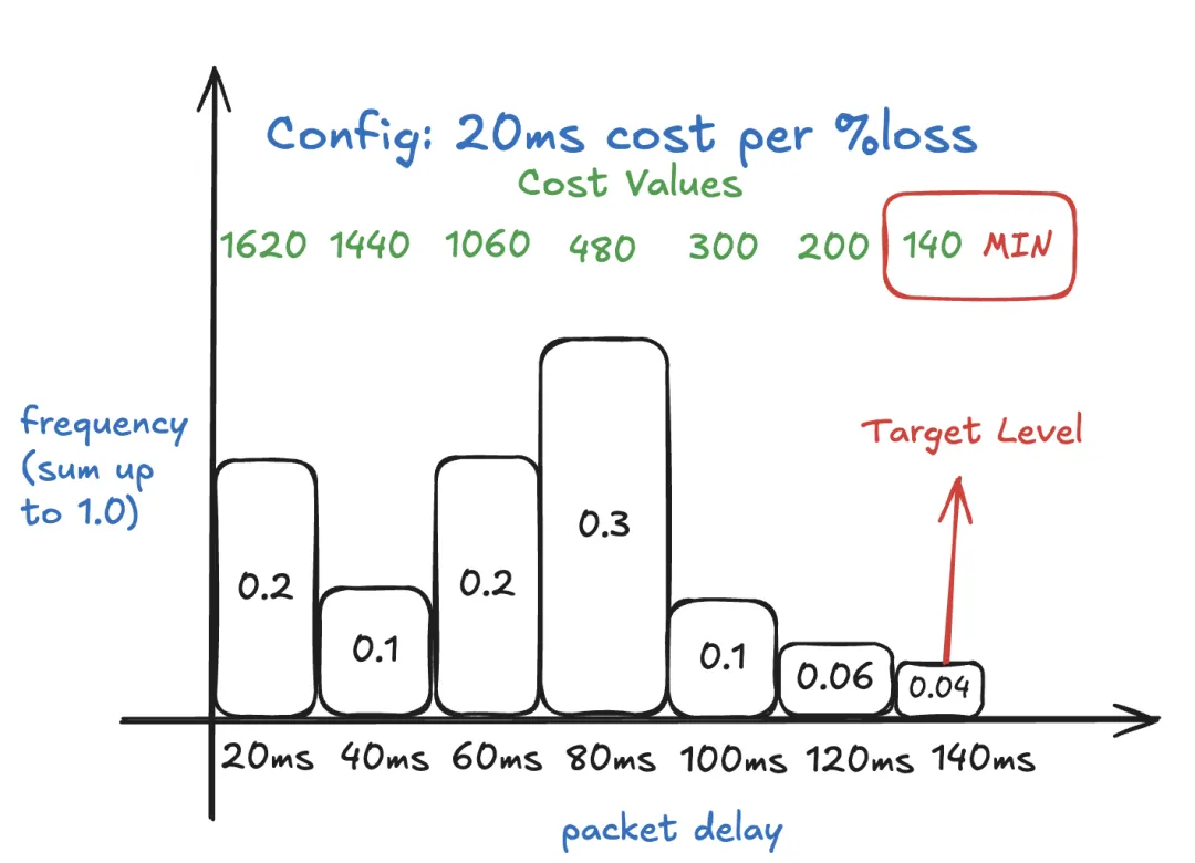 reorder_optimizer不使用固定的分位数作为目标水平,而是使用 权衡函数 = 延迟 ms +20 毫秒 × 丢失百分比。丢失百分比默认为 20,但值得调优。