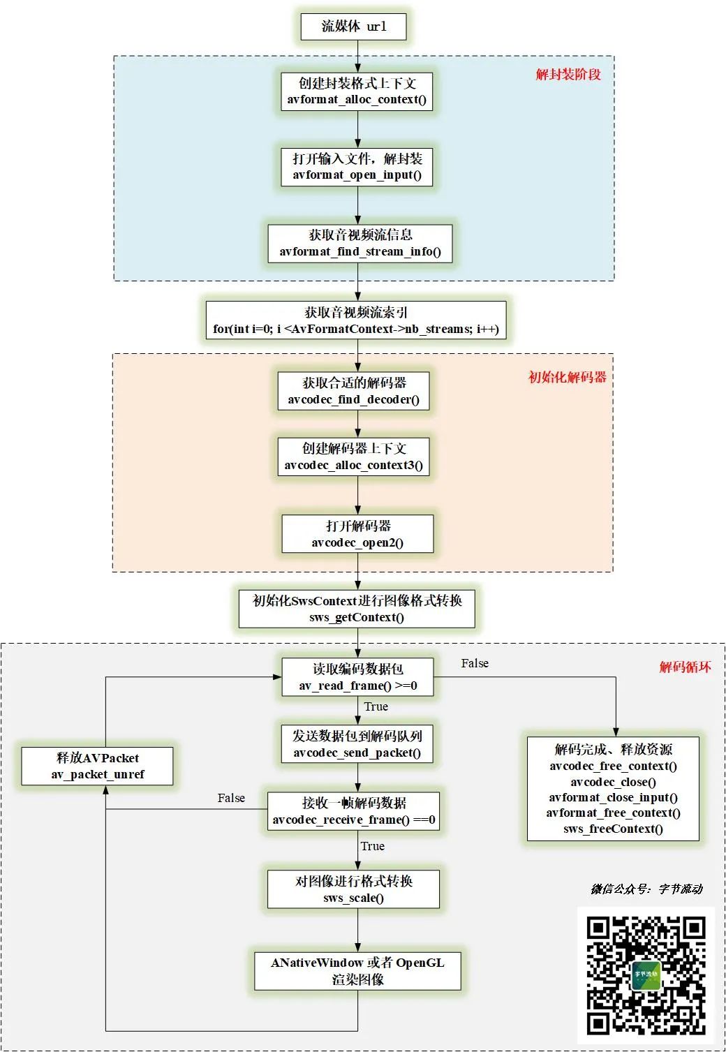 由于 FFmpeg 对不同的传输协议进行了封装,使用 FFmpeg 播放流媒体和播放本地文件,流程上没有区别(针对 FFmpeg 4.2.2 以上版本)。