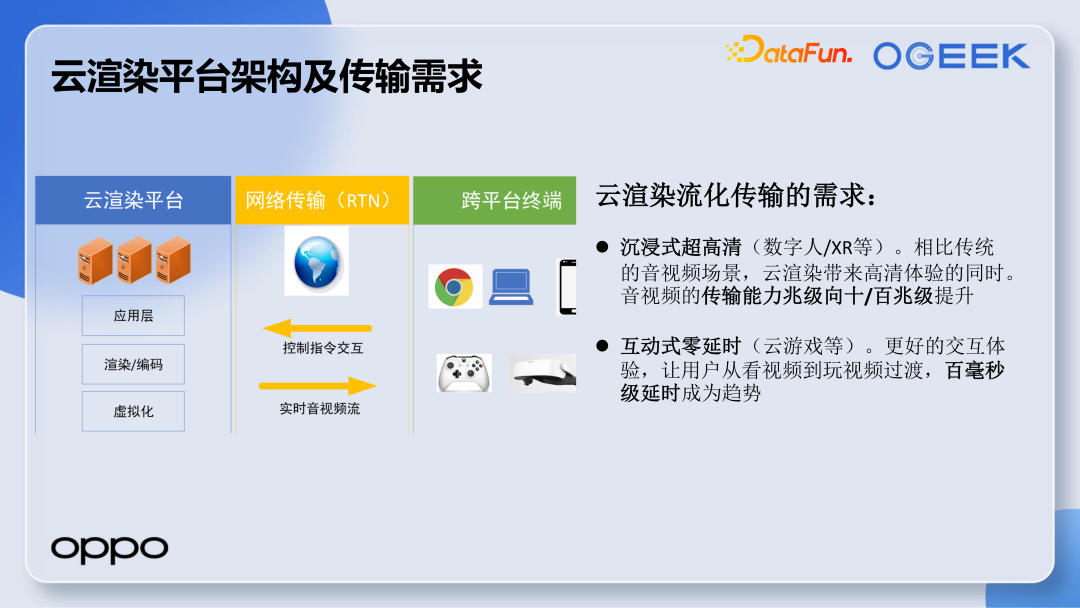 本章节将介绍 OPPO 在云渲染场景与 RTC 的结合,传输架构所做的调整,并分享一些优秀的实践。