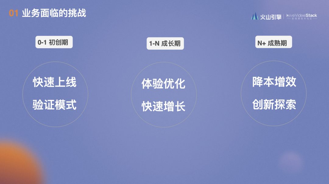 针对初创期的业务,人力投入和买量投放是关键阶段,开发人员在此阶段通常面临着多模块之间进行拼凑的难题,比如同时需要RTC、美颜、剪辑,多模块对接时的SDK组合非常复杂,对接周期以月为单位。